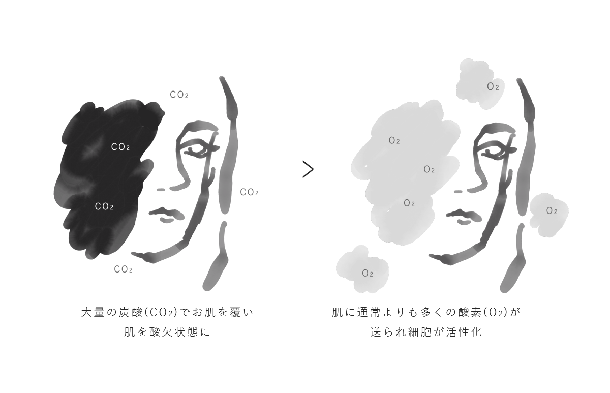炭酸パックで顔を大量のCO2(炭酸)で覆うことにより、