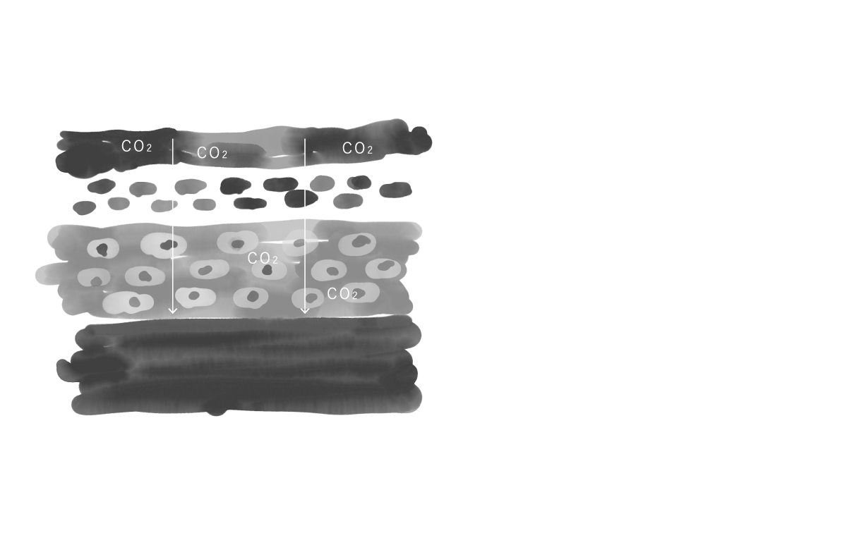 化粧品成分が届かない肌内部はCO2(炭酸)が浸透して、細胞を活性化。